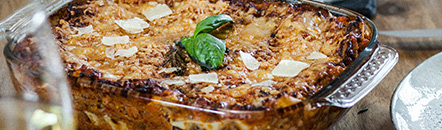 当店の名物、香ばしいチーズがとろける熱々のラザニア。
